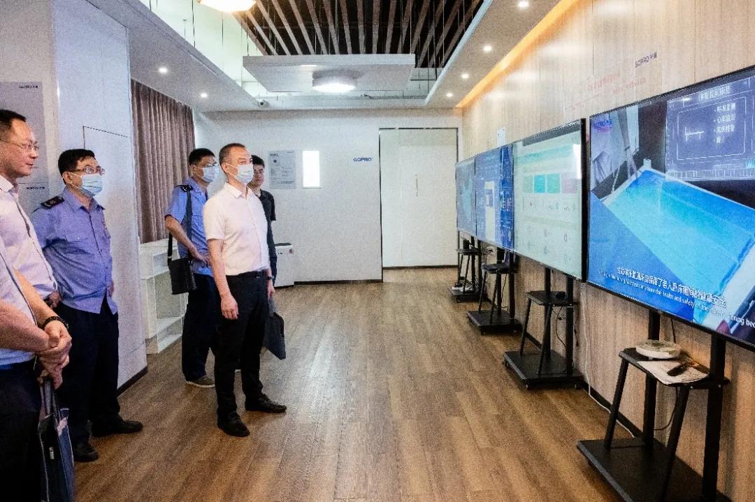 钟向阳总工程师一行首先来到j9游国际站官网智慧空间旅行,,,,,,,听取公司近年来在UV消杀智慧医养等板块事情效果情形汇报 。。。 。。。。。在旅行智慧医养展厅中,,,,,,,向导们驻足张望,,,,,,,对公司智慧医养的理念体现高度认可,,,,,,,并提出殷切期望 。。。 。。。。。