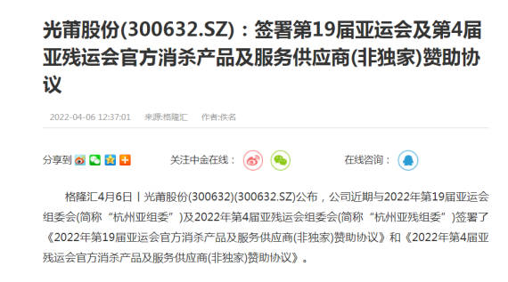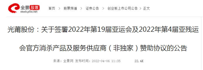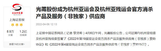 2022年4月6日,,,,,, ,,j9游国际站官网股份在深圳证券生意所宣布上市公司通告,,,,,, ,,宣布成为第19届亚运会及第4届亚残运会官方消杀产品及效劳供应商。。。。。近期以来,,,,,, ,,众多行业主流媒体争相报道,,,,,, ,,聚焦j9游国际站官网。。。。。