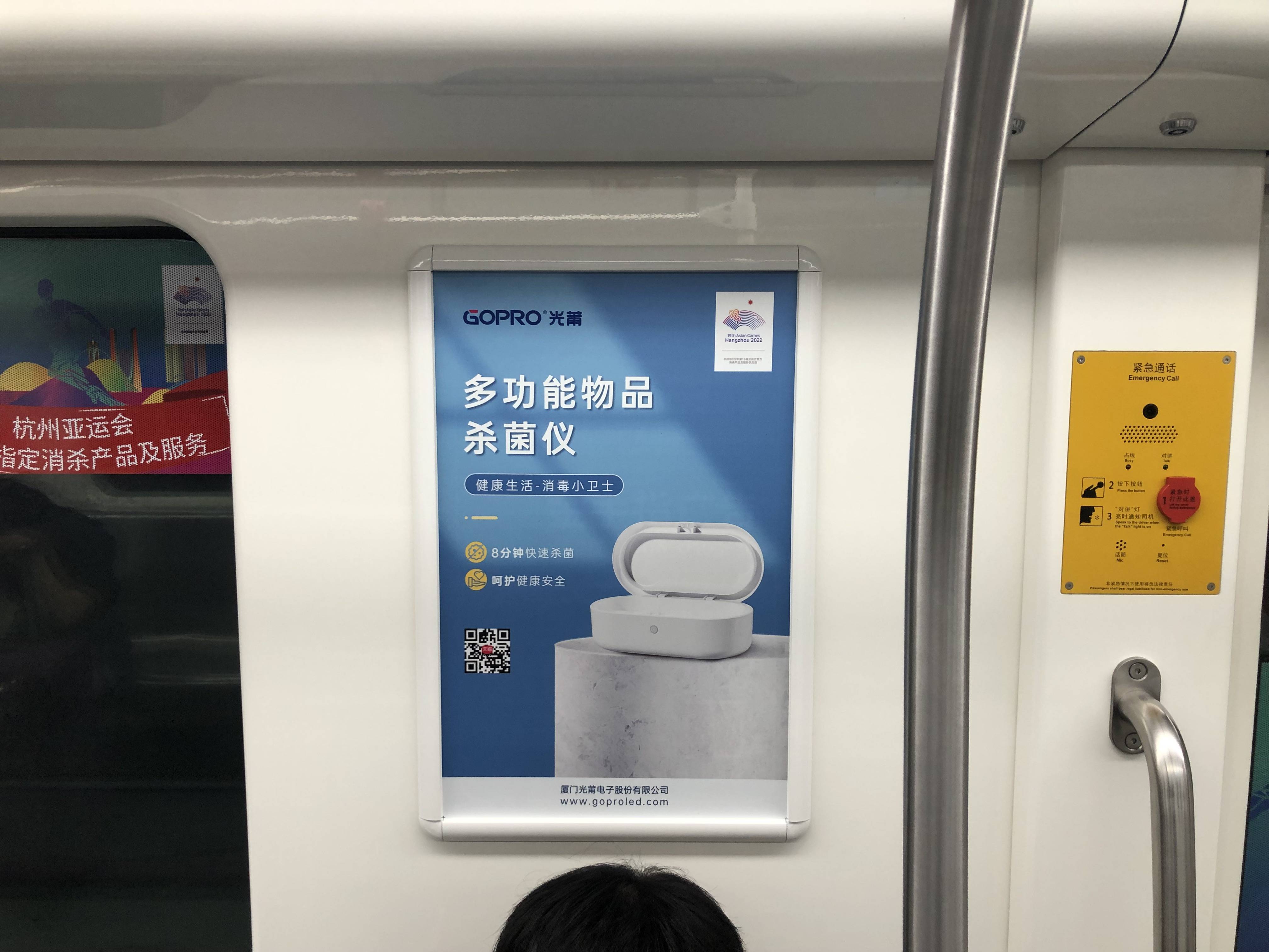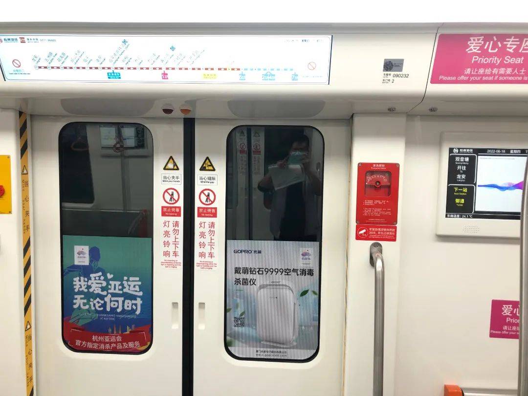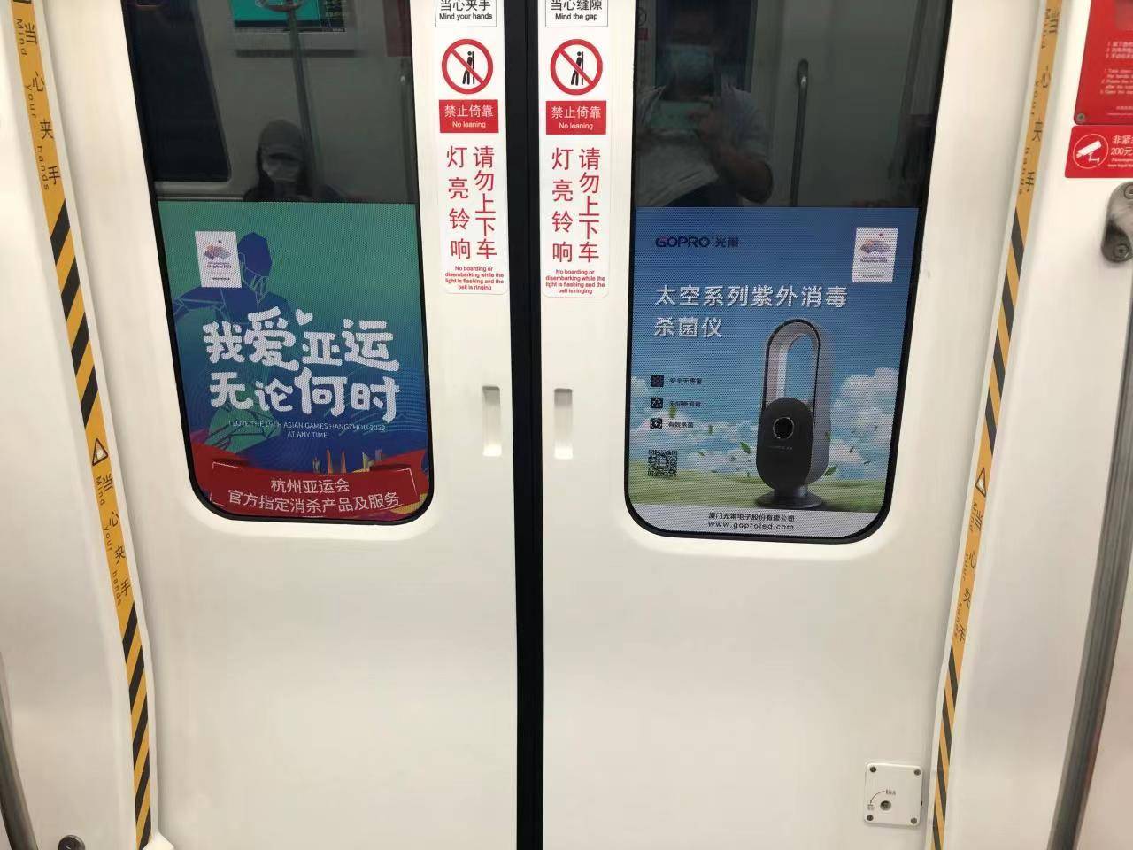 杭州地铁9号线上,,,,,,,j9游国际站官网通过列车看板、车门玻璃、车窗玻璃等前言投放消杀产品画面,,,,,,,构建都会智慧康健的生涯理念,,,,,,,为亚运气氛的营造提供优异助力。 。。。 。。。。